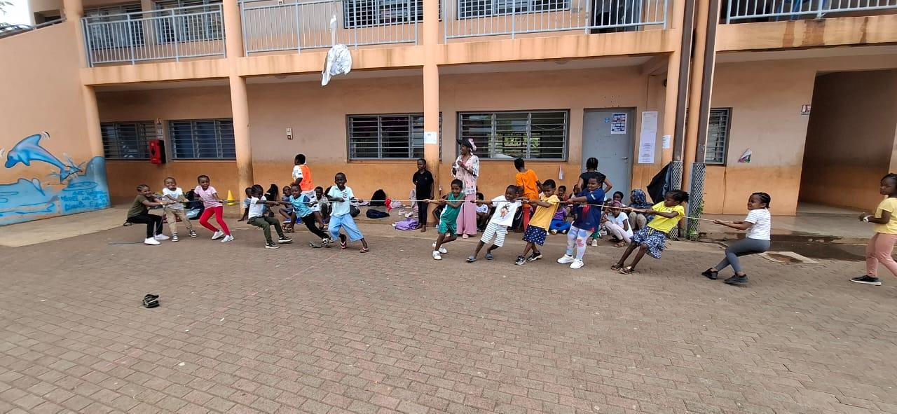 chaîne des pompiers, le ballon brulant, le tir à la corde, la basket Ball et les gendarmes